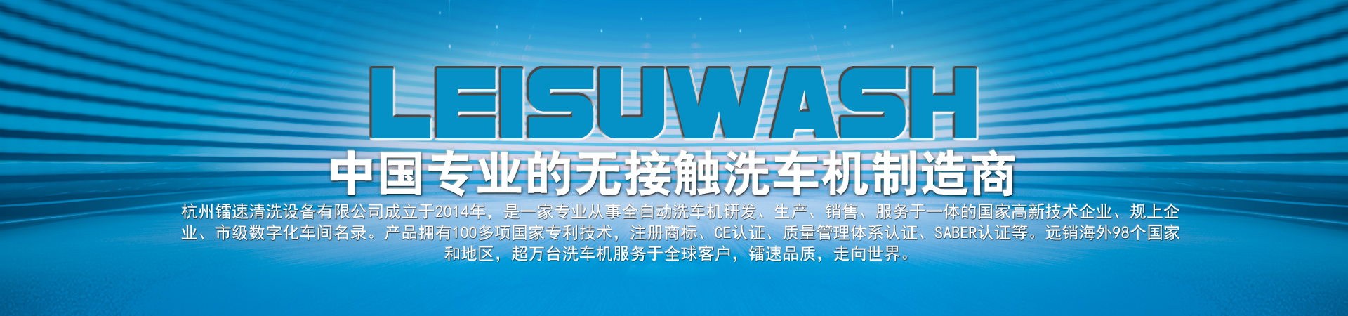 杭州鐳速清洗設(shè)備有限公司成立于2014年,是一家專(zhuān)業(yè)從事自動(dòng)洗車(chē)機(jī)研發(fā)、生產(chǎn)、銷(xiāo)售、服務(wù)于一體的國(guó)家高新技術(shù)企業(yè),注冊(cè)資金2000萬(wàn)元。匯聚了一批專(zhuān)業(yè)的技術(shù)創(chuàng)新團(tuán)隊(duì),與時(shí)俱進(jìn),不斷創(chuàng)新,研發(fā)生產(chǎn)出質(zhì)量過(guò)硬、技術(shù)領(lǐng)先的全智能電腦洗車(chē)設(shè)備,是國(guó)內(nèi)集洗護(hù)一體全自動(dòng)汽車(chē)清洗系統(tǒng)的開(kāi)拓者和領(lǐng)跑者。 鐳速公司一步一個(gè)腳印,一步一個(gè)臺(tái)階,通過(guò)不斷的努力和鉆研,厚積薄發(fā),從一家名不經(jīng)傳的小企業(yè),走到今天,成為中國(guó)洗車(chē)機(jī)行業(yè)出口最多的企業(yè)。鐳速品質(zhì)正逐步成為中國(guó)洗車(chē)機(jī)行業(yè)的高品質(zhì)代名詞,真正進(jìn)入國(guó)際一線洗車(chē)機(jī)行列,打造贏得全球信賴的中國(guó)品牌!